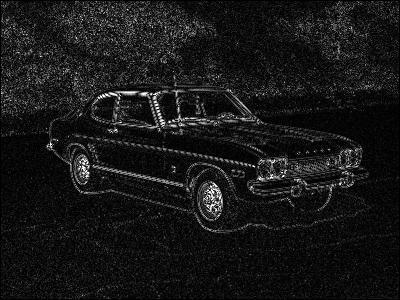 img2[i][j] = min{ | img1[i-1][j] + img1[i+1][j] + img1[i][j-1] + img1[i][j+1] - 4 img1[i][j] |, 255}とする. つまり,img2[i][j] は img1[i-1][j] + img1[i+1][j] + img1[i][j-1] + img1[i][j+1] - 4 img1[i][j] の絶対値と255の小さい方である.